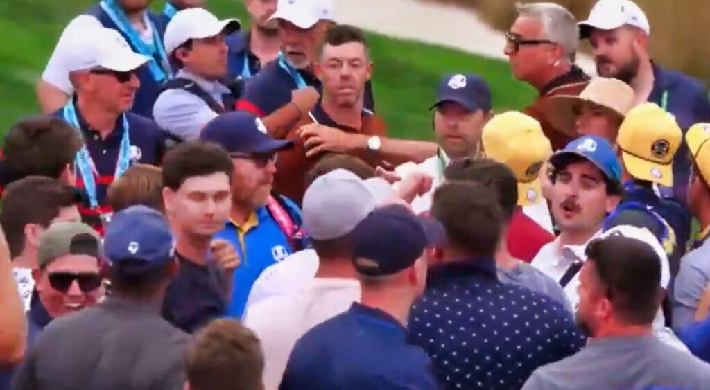 Rory McIlroy ready to fight the fans after him and his wife were assaulted by fans at the 2025 Ryder Cup. Photo courtesy of totalprosports.com